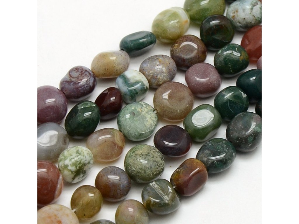 Neukončená šňůra s korálky ve tvaru valounků. Délka šňůry cca 37 cm +- 2cm. Rozměr valounků v rozmezí 8~12x8~12mm