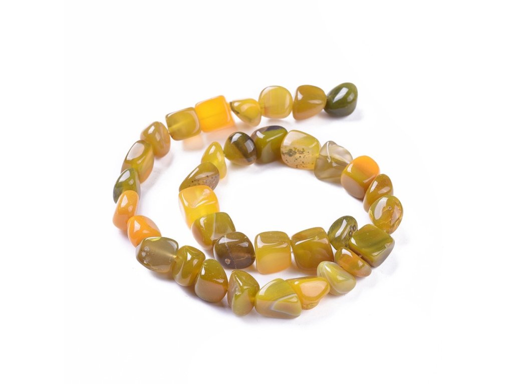 Neukončená šňůra s korálky ve tvaru valounků. Délka šňůry cca 37 cm +- 2cm. Rozměr valounků v rozmezí 4~8x6~9x5~7mm