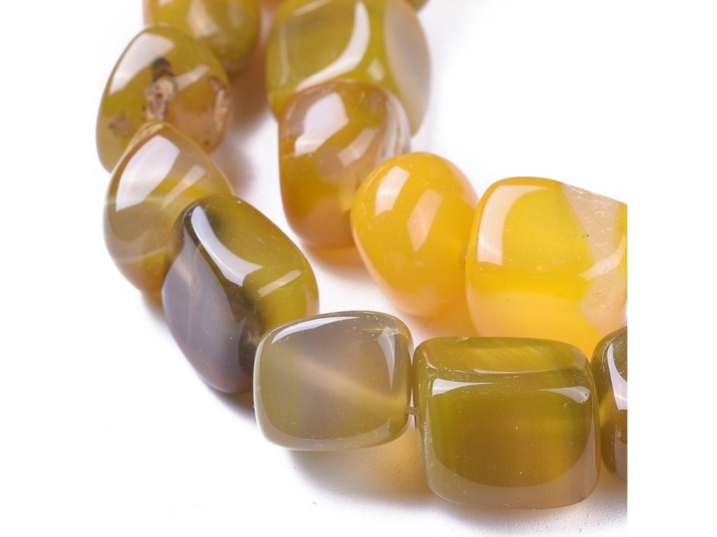 Neukončená šňůra s korálky ve tvaru valounků. Délka šňůry cca 37 cm +- 2cm. Rozměr valounků v rozmezí 9~12x8~13x5~7mm