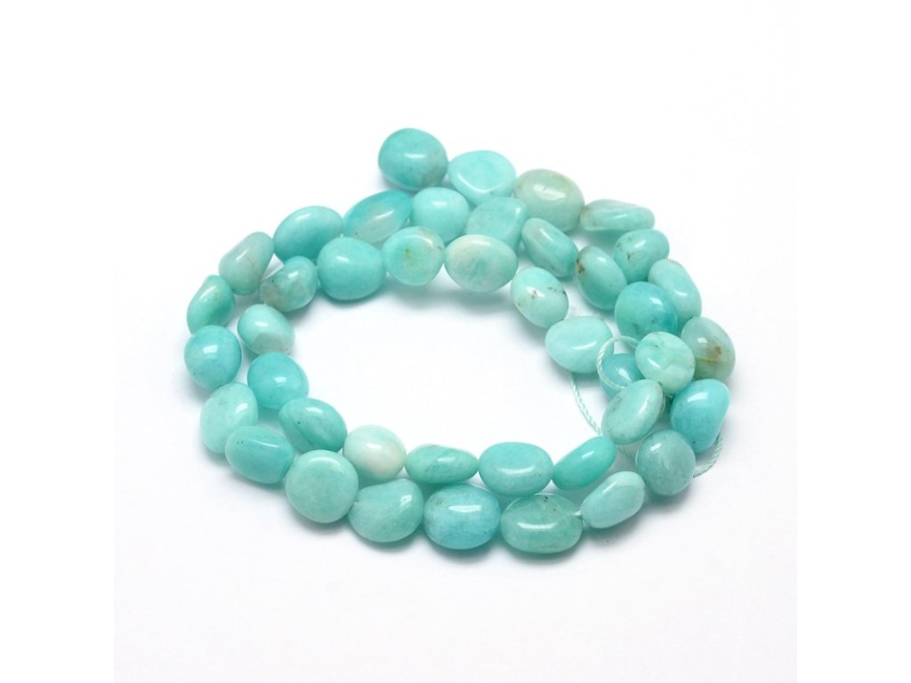 Neukončená šňůra s korálky ve tvaru valounků. Délka šňůry cca 37 cm +- 2cm. Rozměr valounků v rozmezí 9~12x8~13x5~7mm