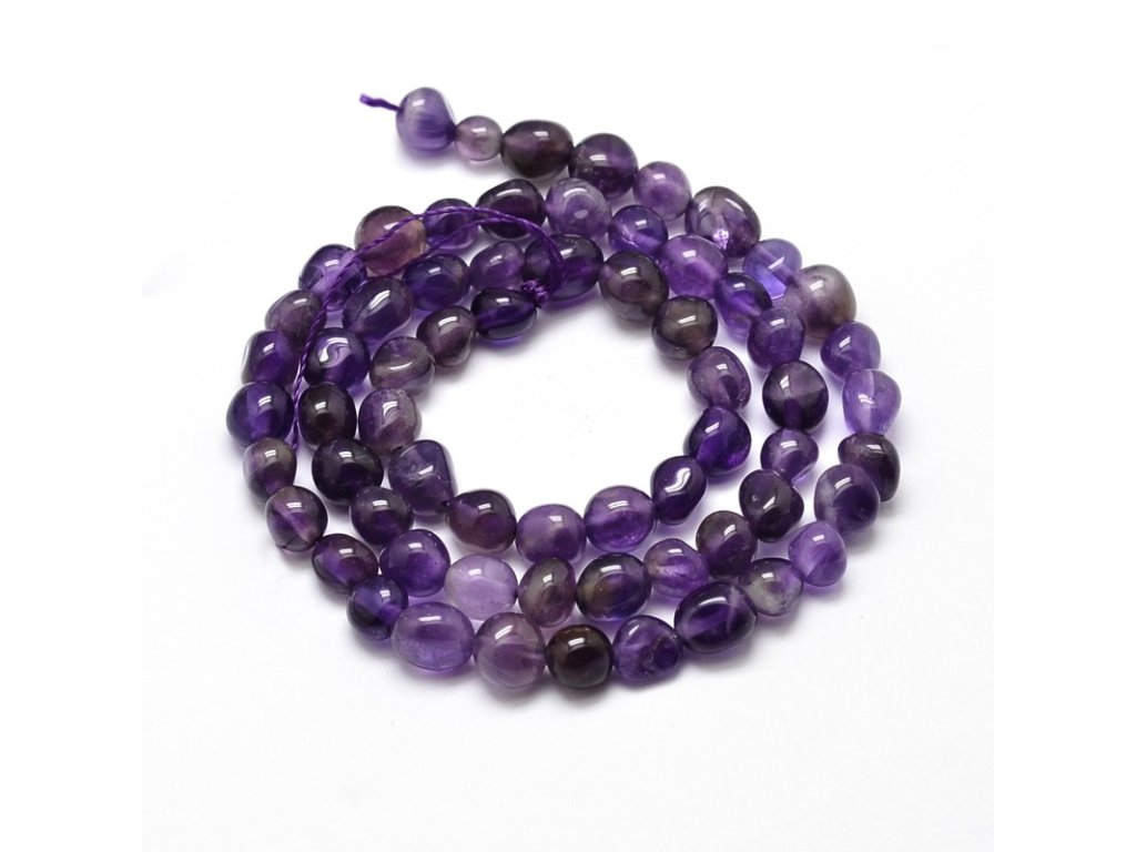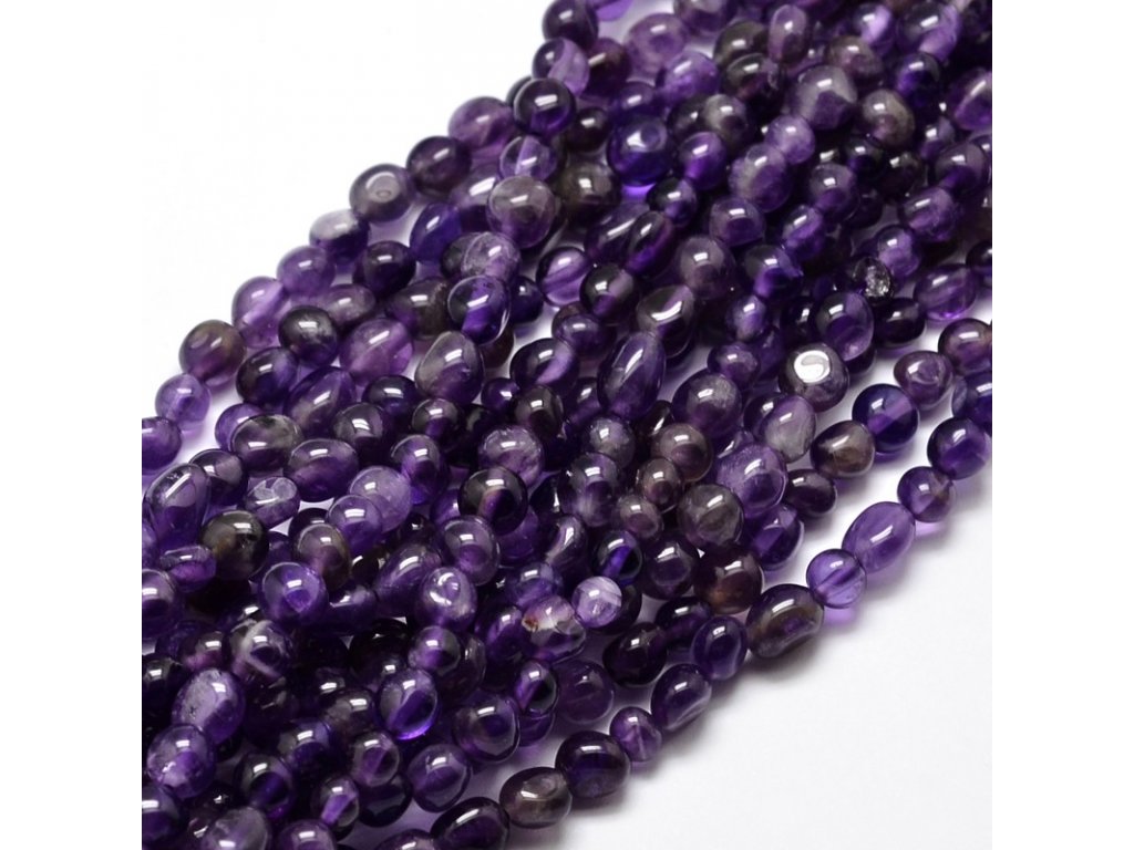 Neukončená šňůra s korálky ve tvaru valounků. Délka šňůry cca 37 cm +- 2cm. Rozměr valounků v rozmezí 5~10x6~7x3~7mm