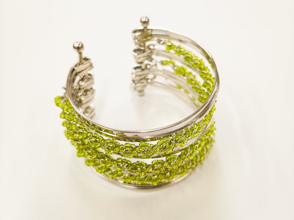 Náramek ze zlomků minerálů. Obvod cca 18 - 19 cm.