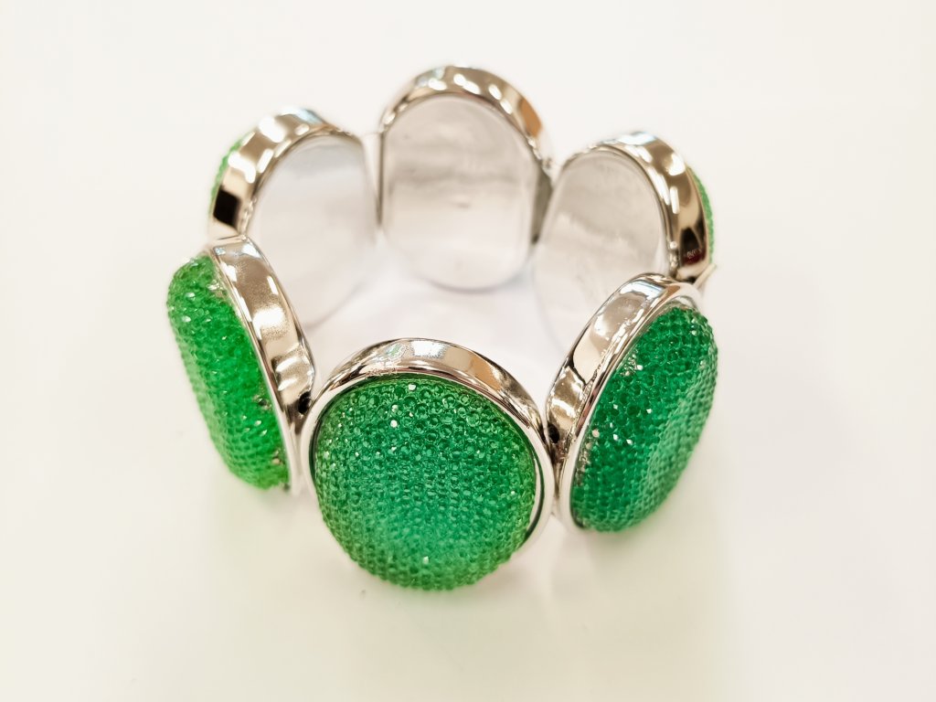 Náramek ze zlomků minerálů. Obvod cca 18 - 19 cm.