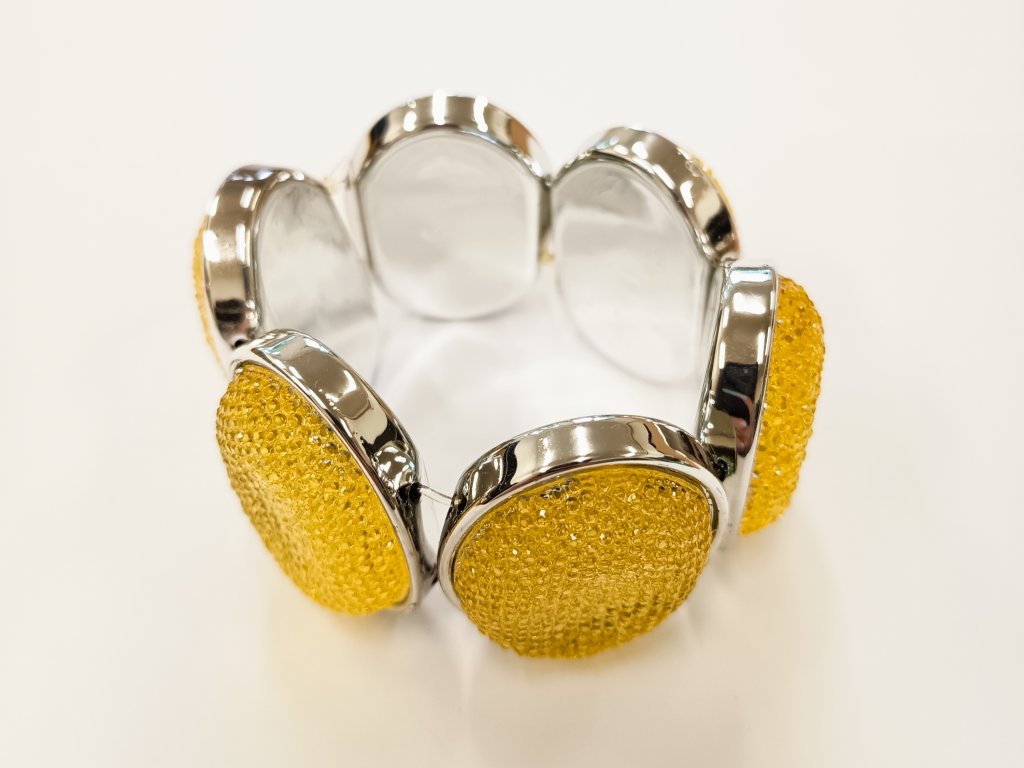 Náramek ze zlomků minerálů. Obvod cca 18 - 19 cm.