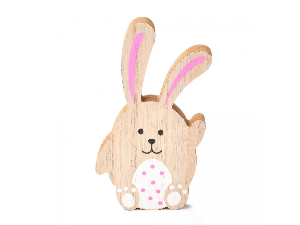 Dřevěná velikonoční dekorace - stojící králíček s vajíčkem