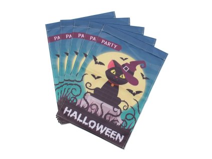 Halloween vlajka banner 445x304mm kočka netopýři. Rozměr 445x304x0.4mm, otvor na navlečení 28.5mm. Cena uvedena za 1 kus