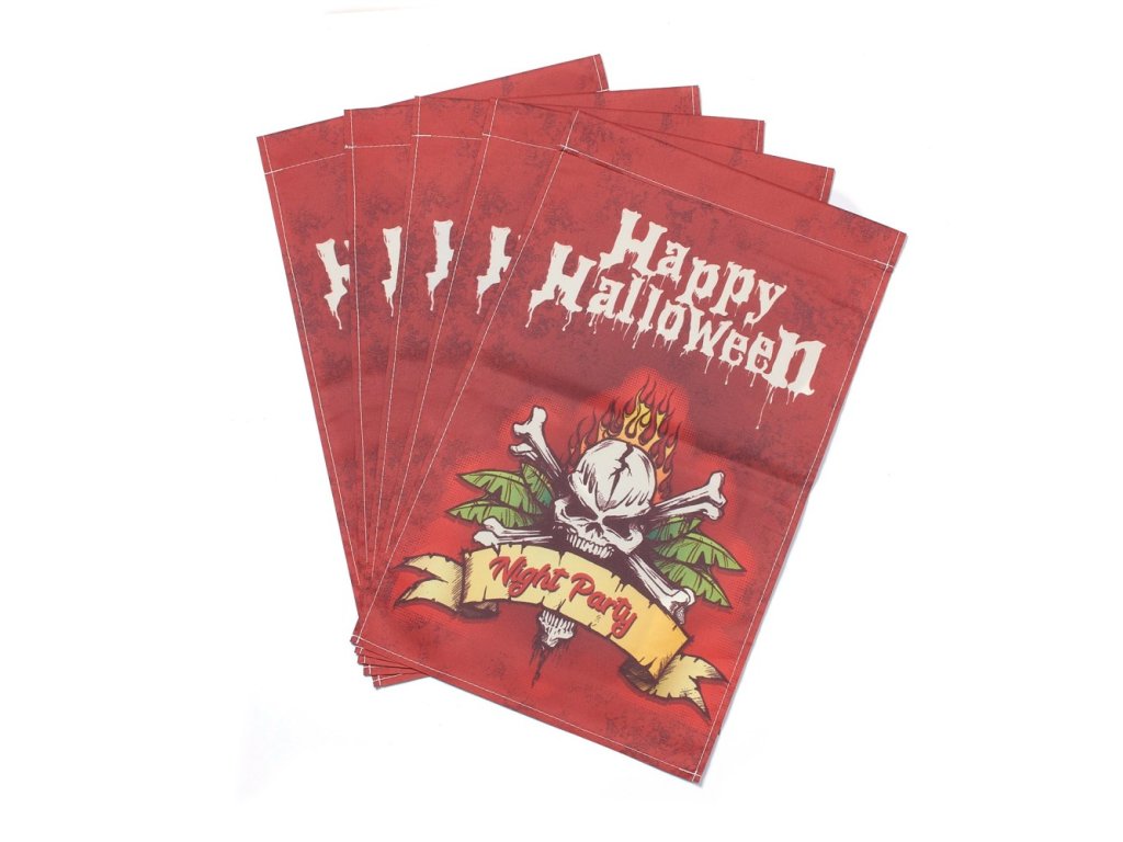 Halloween vlajka banner 460x320mm lebka. Rozměr 460x320x0.4mm, otvor na navlečení 18mm. Cena uvedena za 1 kus