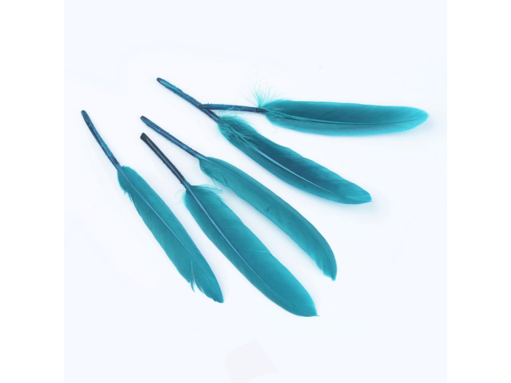 Husí peří modré 100~175x13~25mm 10 kusů v balení