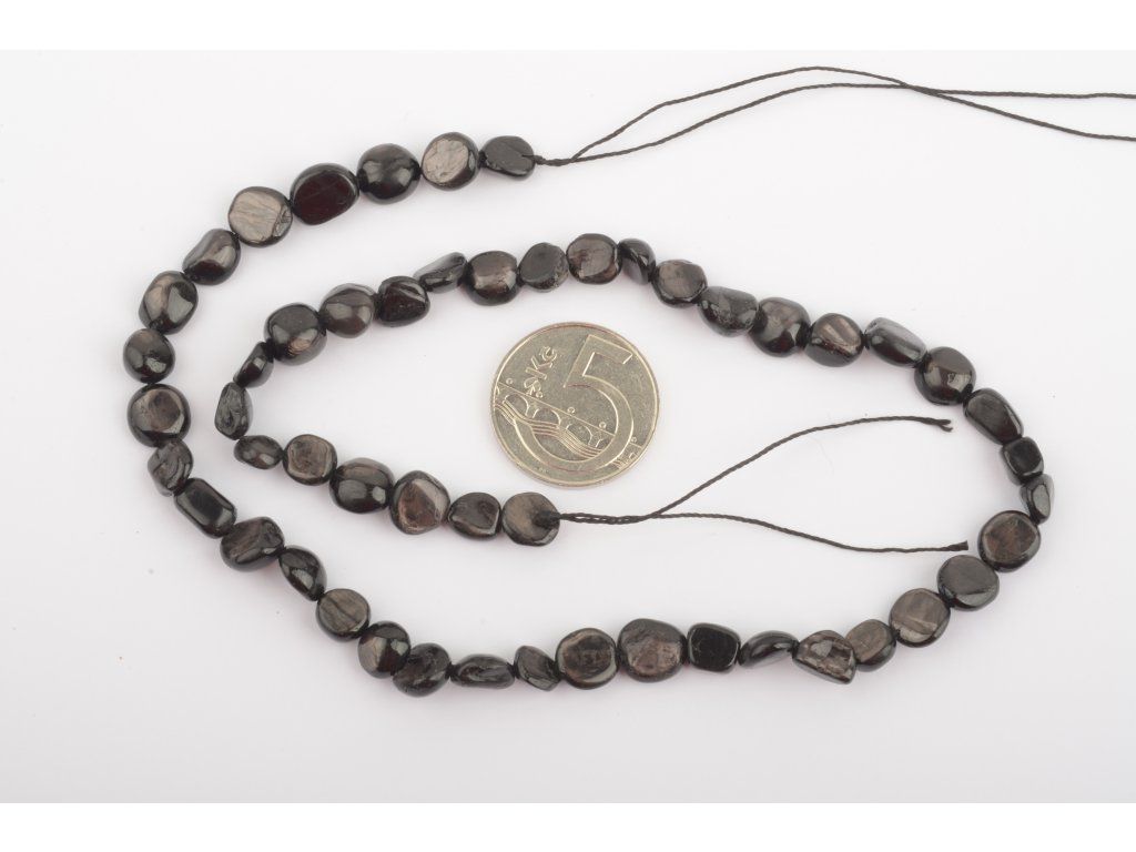 Neukončená šňůra s korálky ve tvaru valounků. Délka šňůry cca 36-38cm. Rozměr valounků v cca 6-8mm