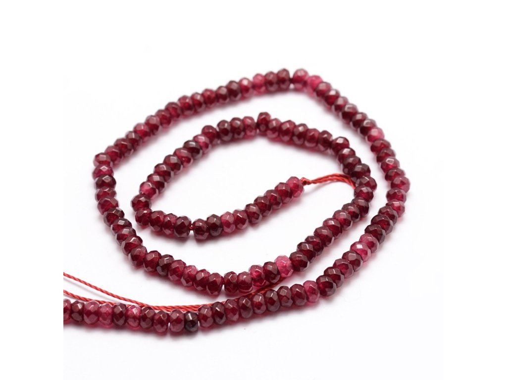 Jadeit Malaysia červený rondelky fasetované 4x3 mm (105 - 115 korálků)