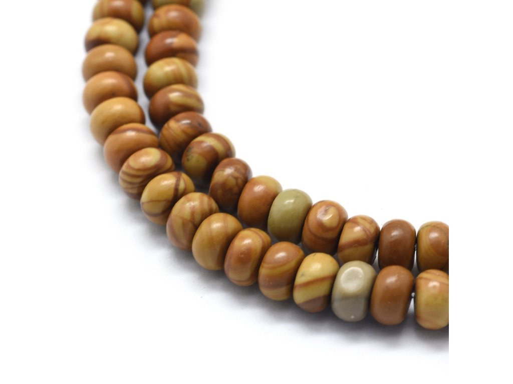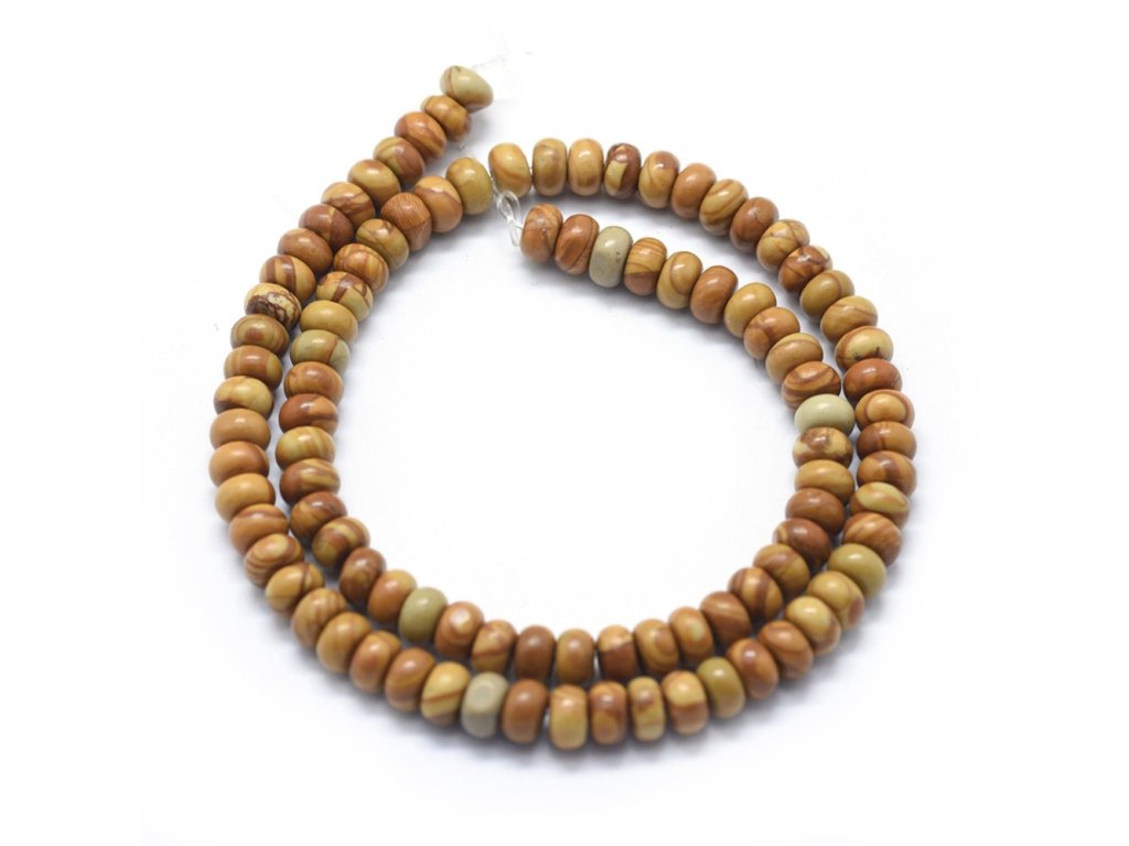 Jaspis dřevitý rondelky 6x4 mm (90 - 95 korálků)
