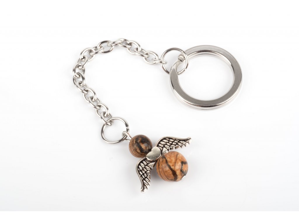 Kroužek s řetízkem cca 75mm, průměr kroužku cca 20mm, andílek cca 30mm, hlavička 6mm, tělo 8mm