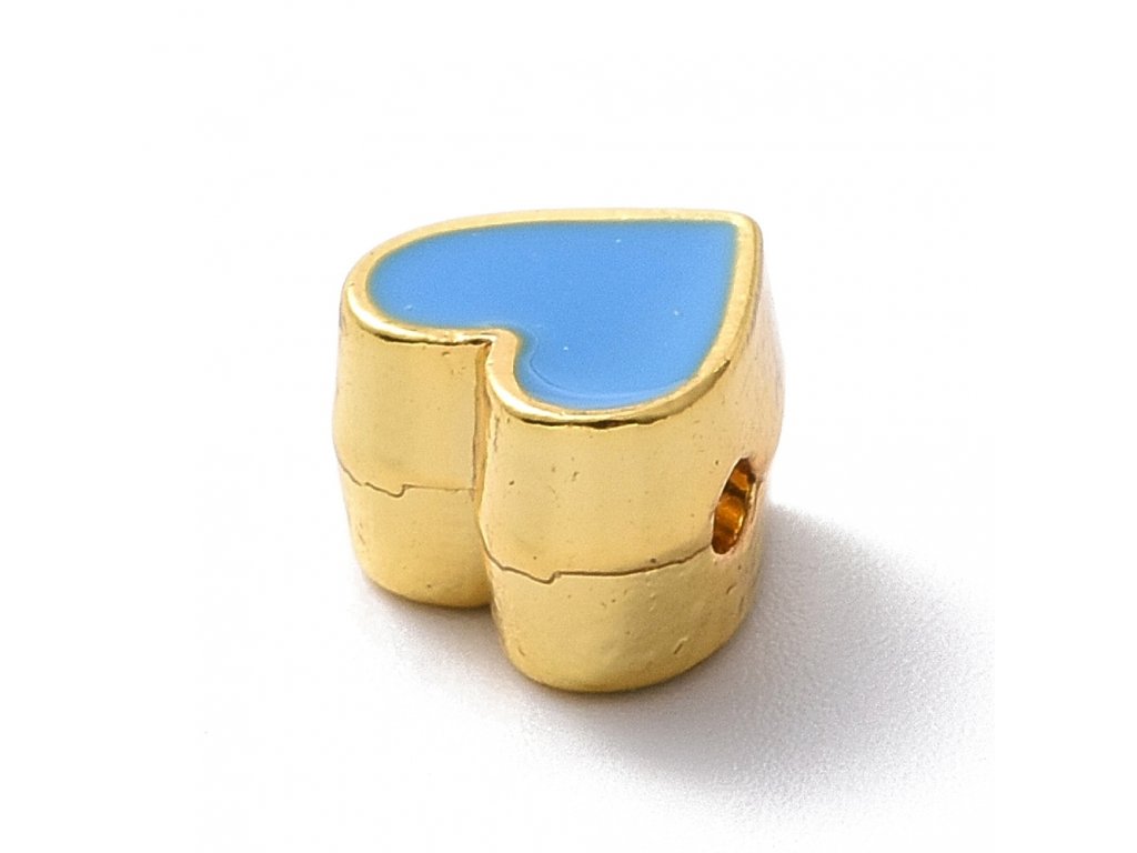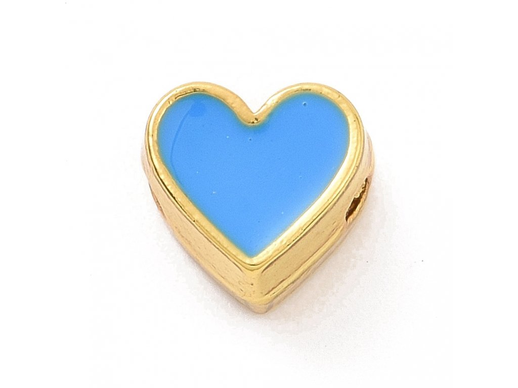 Korálek smaltovaný srdce modré - pozlaceno 18K zlatem 7x7.5x5mm