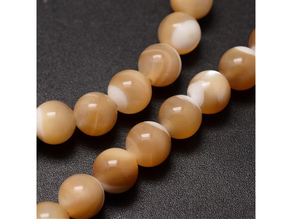 Korálky z mušlí hnědé 6mm cca 68 korálků na šňůře