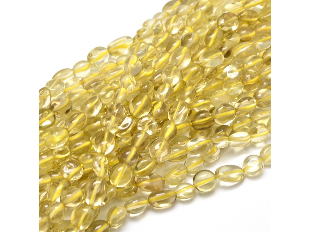 Neukončená šňůra s korálky ve tvaru valounků. Délka šňůry cca 37 cm +- 2cm. Rozměr valounků v rozmezí 5~10x6~7x3~7mm