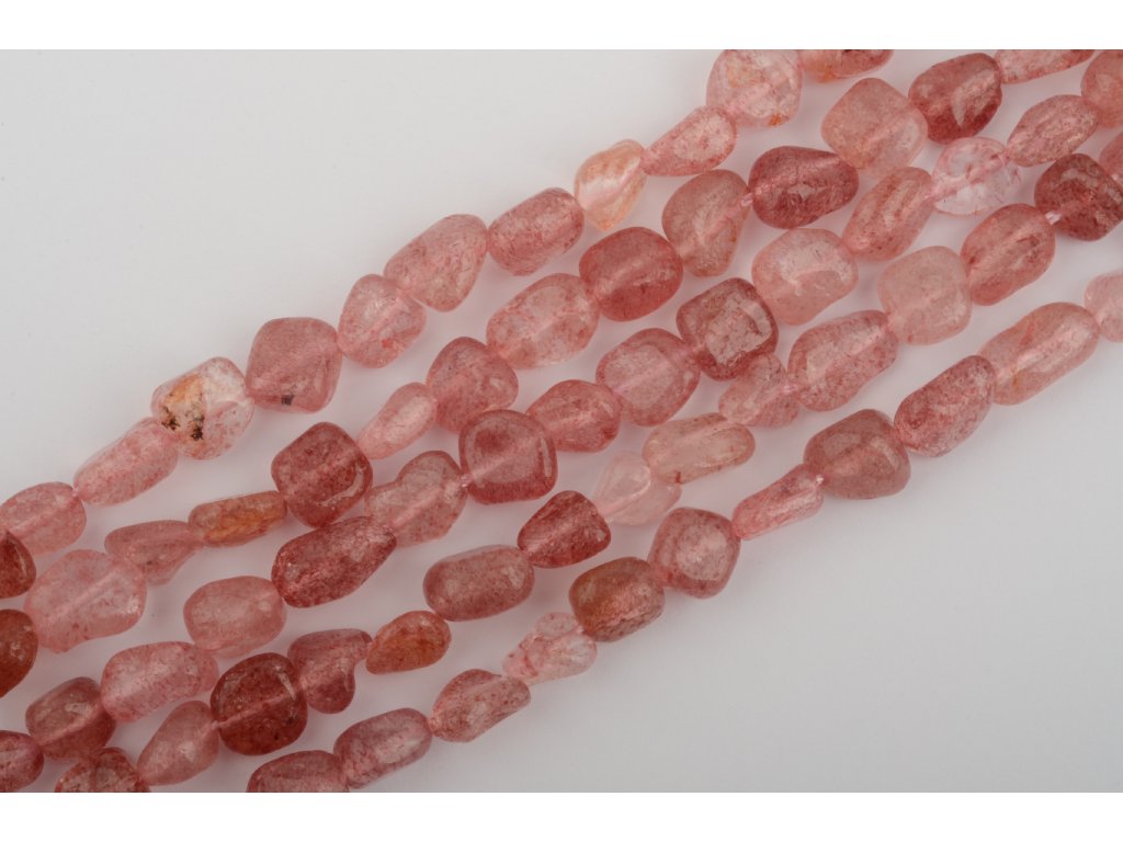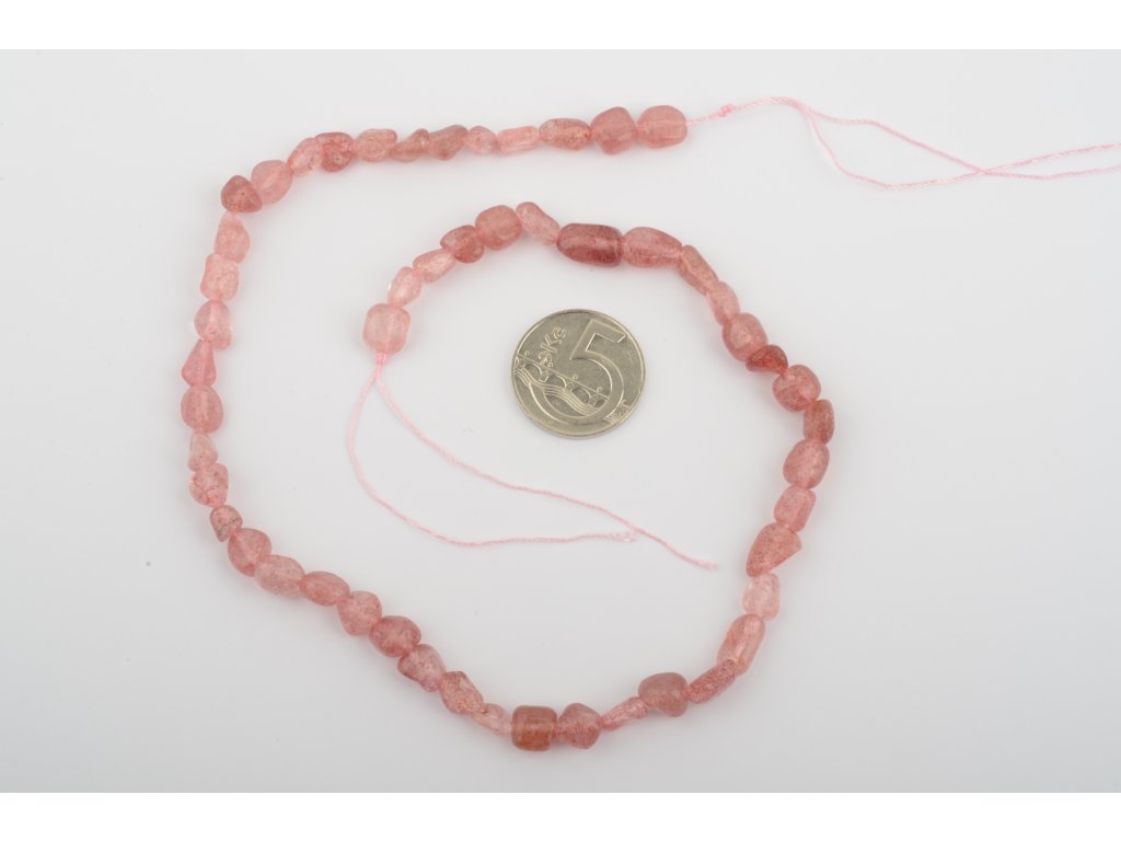 Křemen jahodový valounky 6-8mm šňůra cca 36-38 cm