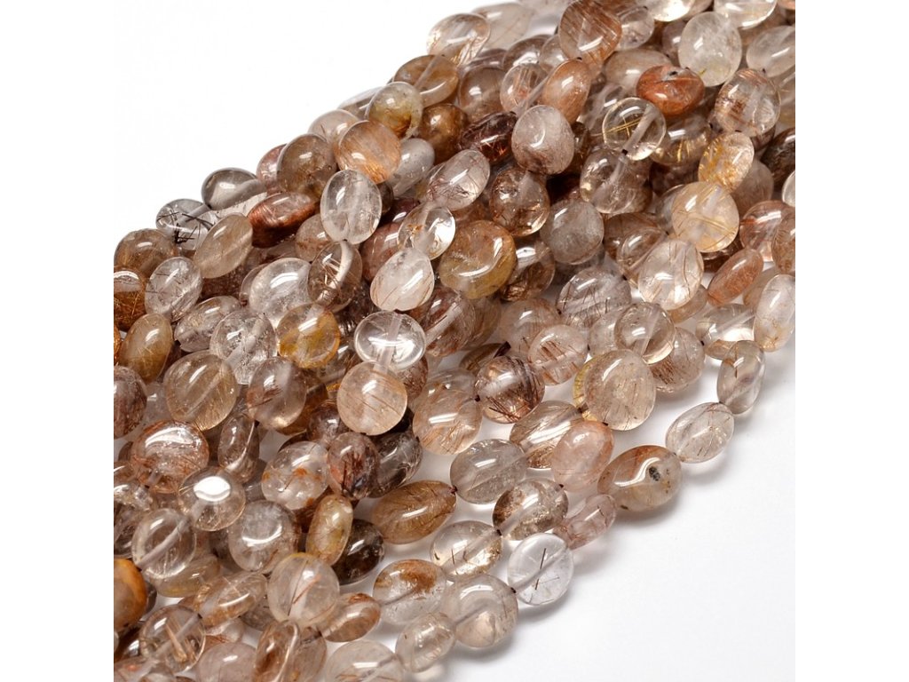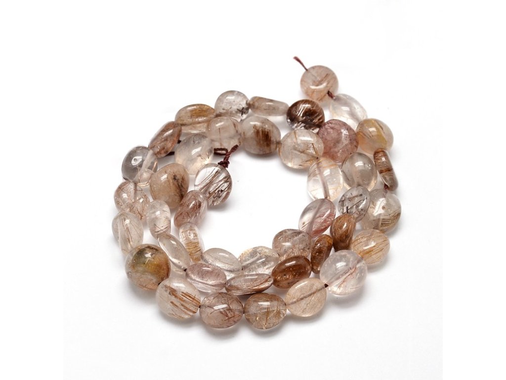 Neukončená šňůra s korálky ve tvaru valounků. Délka šňůry cca 37 cm +- 2cm. Rozměr valounků v rozmezí 9~12x8~13x5~7mm