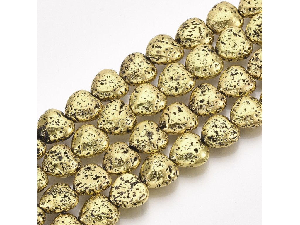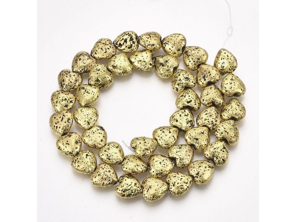 Láva pokovená srdce barva antik zlato (38 - 40 korálků)