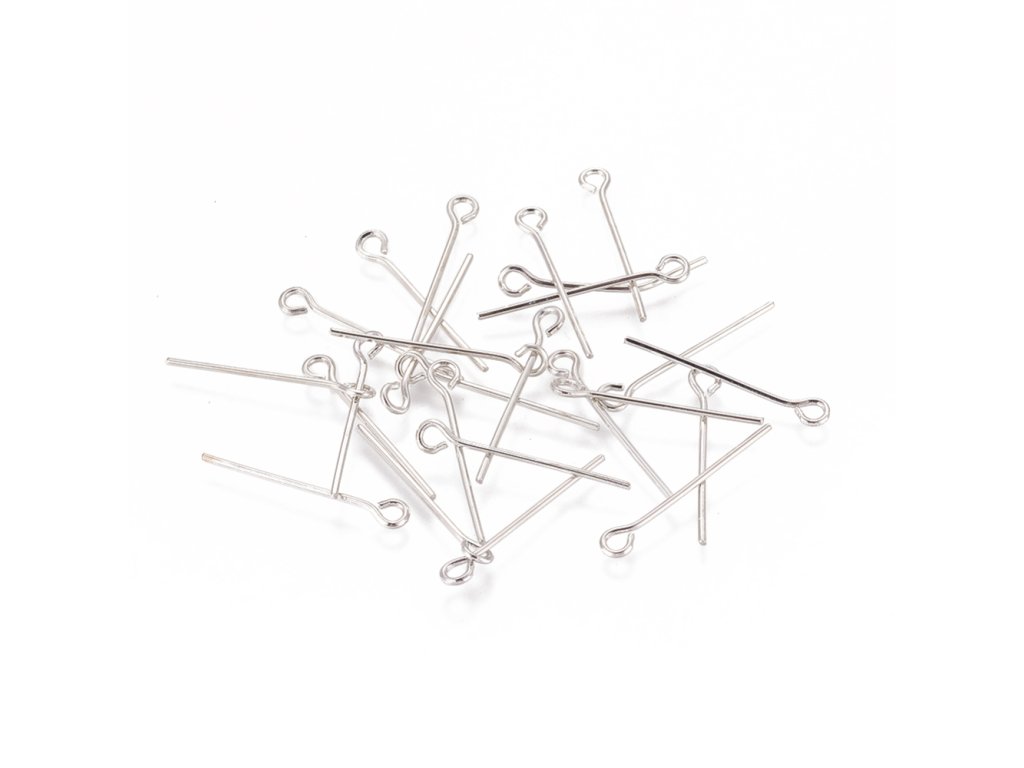 Mosazná ketlovací jehla s očkem. Rozměr cca 20mm délka, cca 0.7mm tloušťtka. Očko cca 2mm. balení 100 gramů cca 1150 kusů