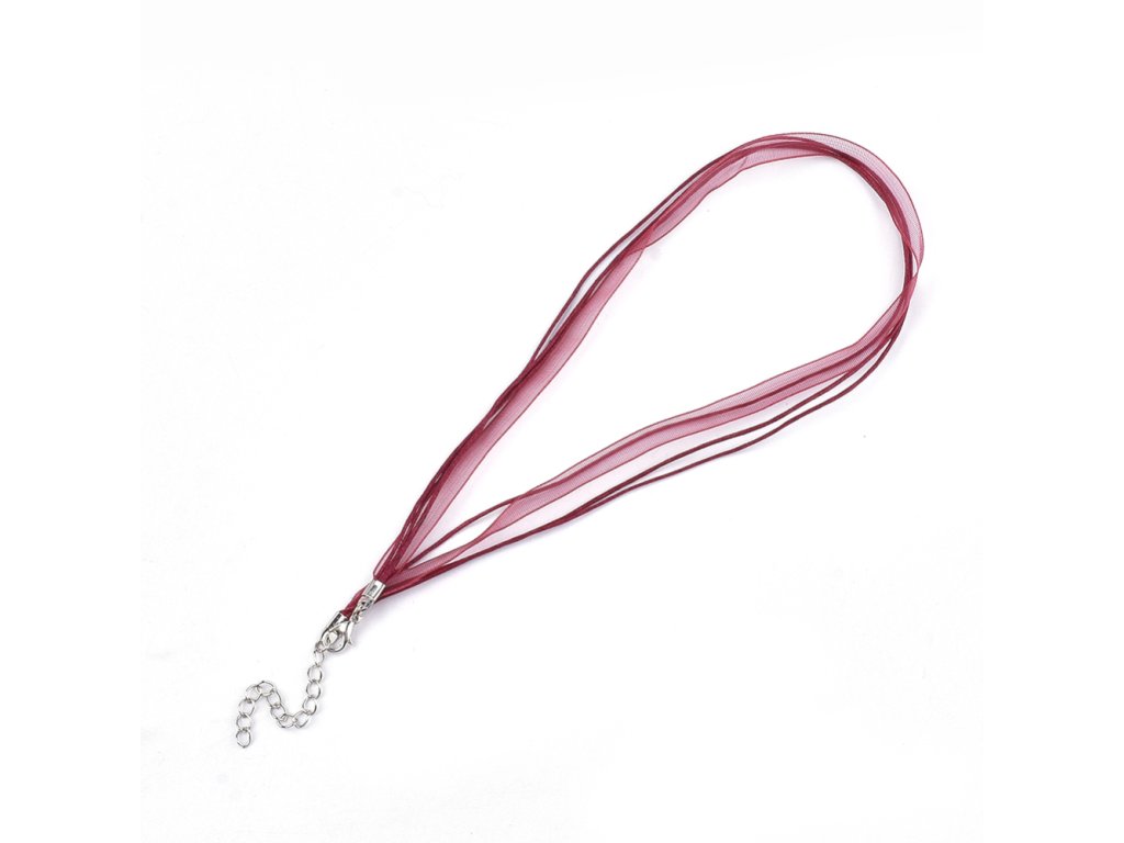 Náhrdelník polotovar voskovaná šňůra s organzou cca 45 cm červený