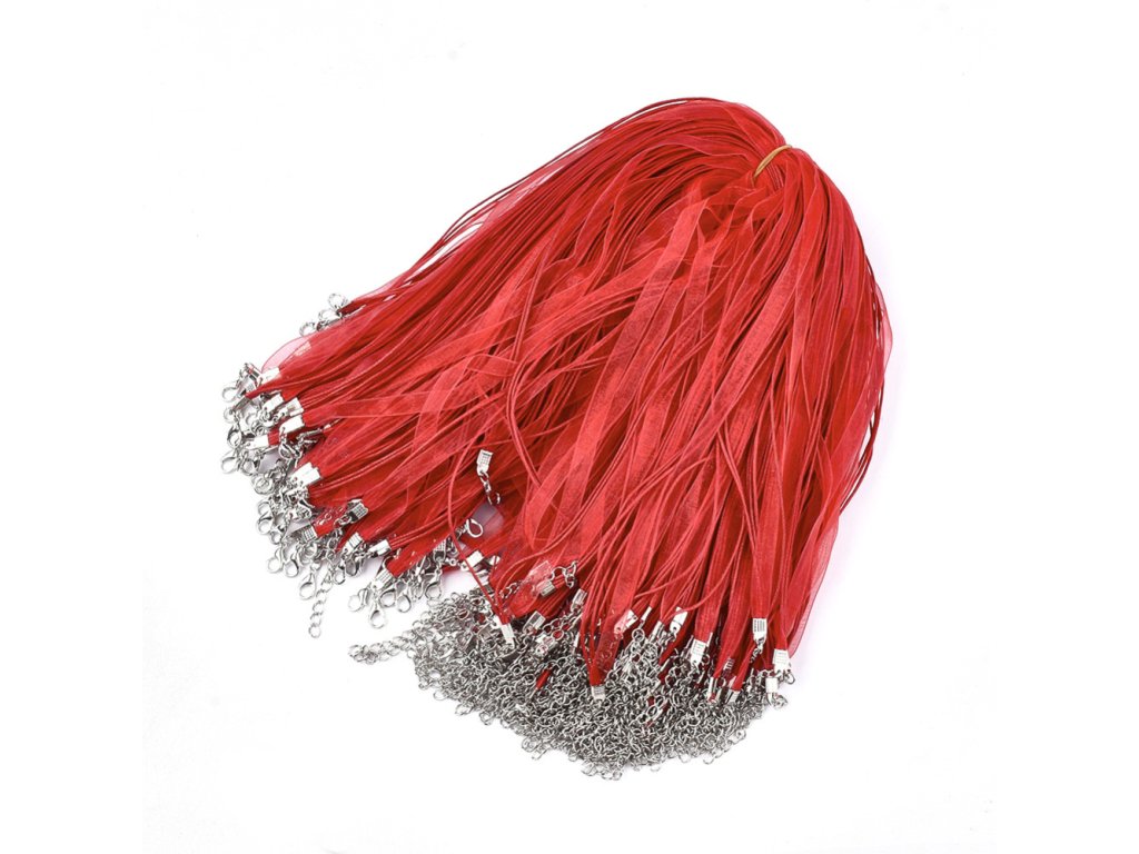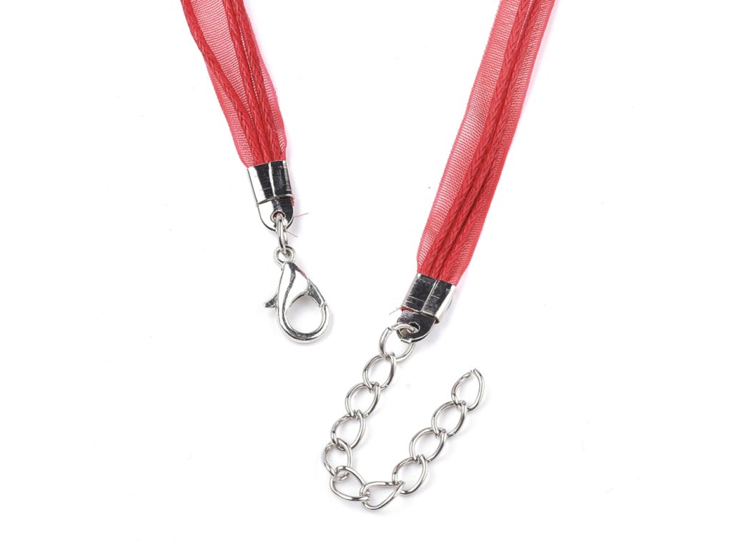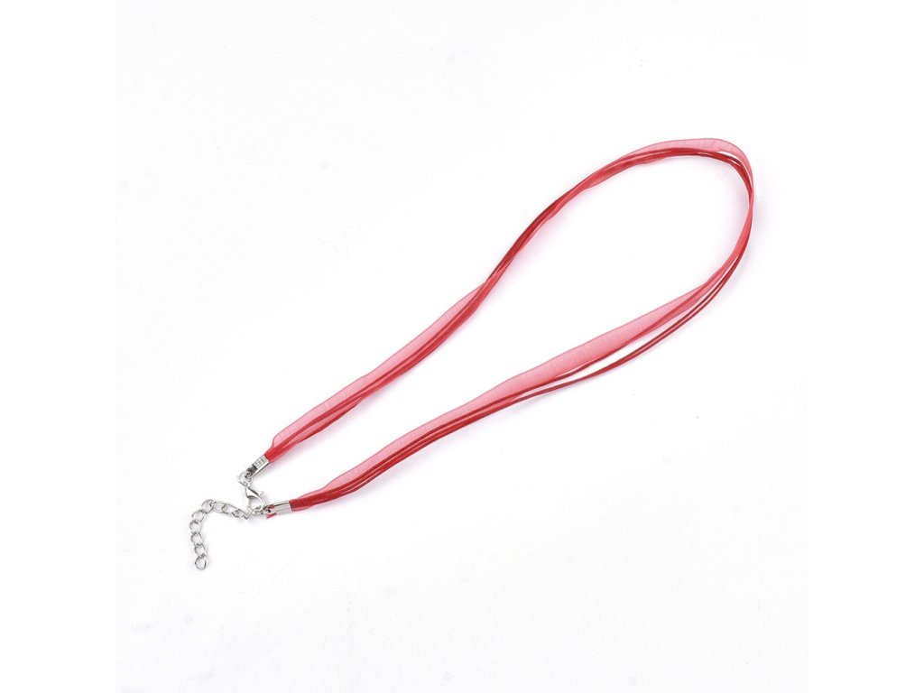Náhrdelník polotovar voskovaná šňůra s organzou cca 45 cm červený