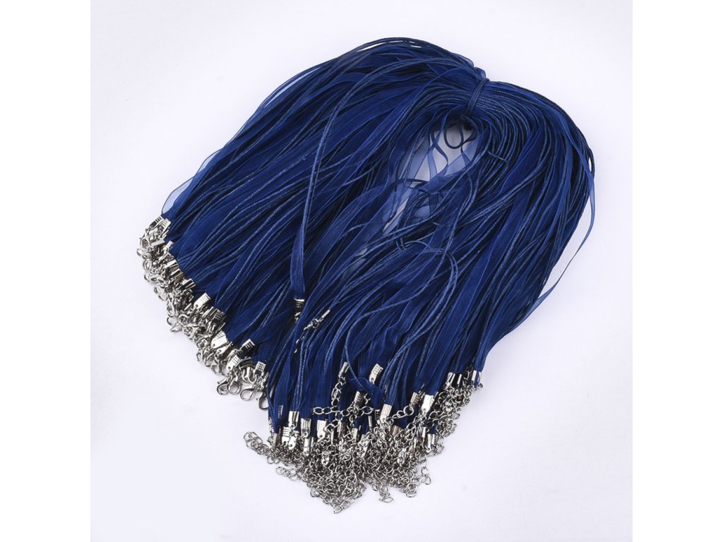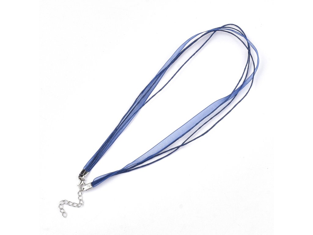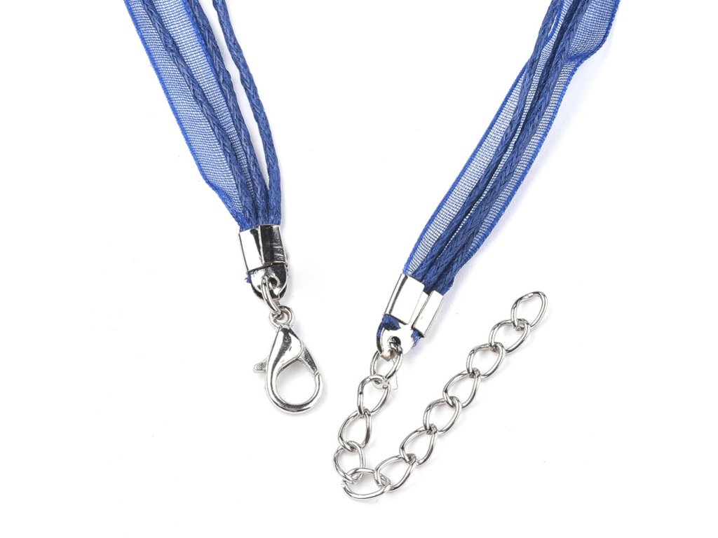 Náhrdelník polotovar voskovaná šňůra s organzou cca 45 cm modrý
