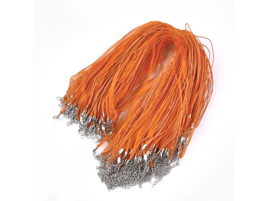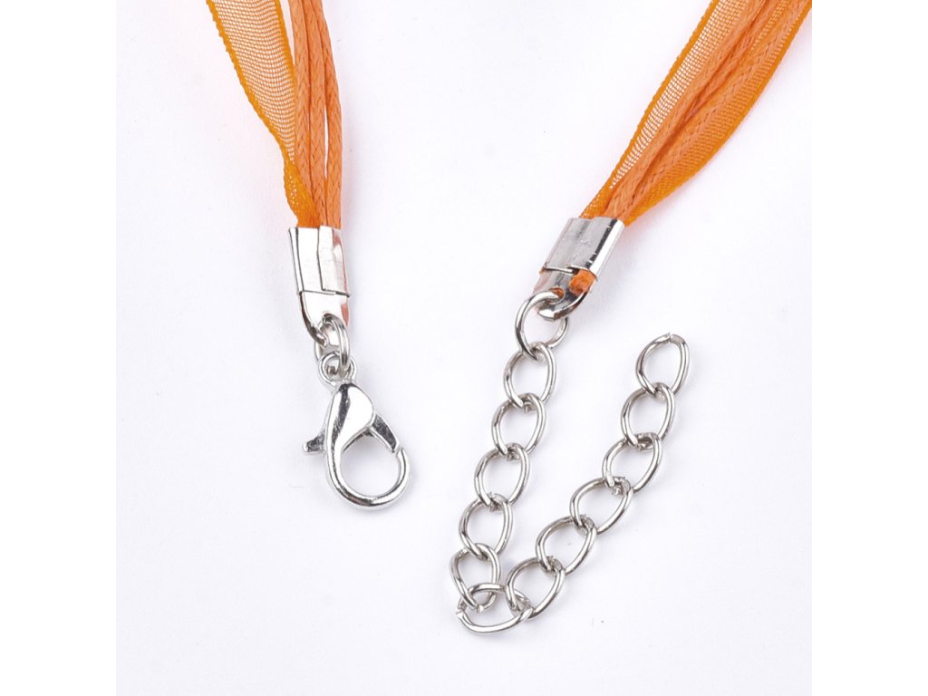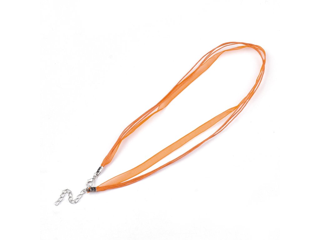 Náhrdelník polotovar voskovaná šňůra s organzou cca 45 cm oranžový