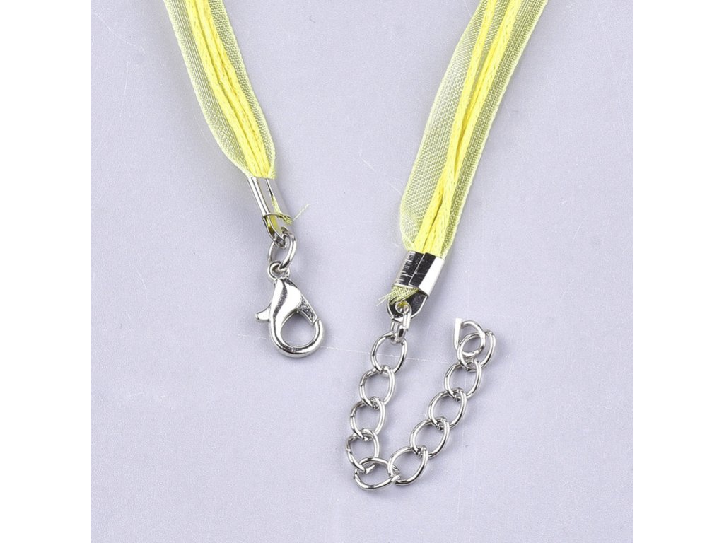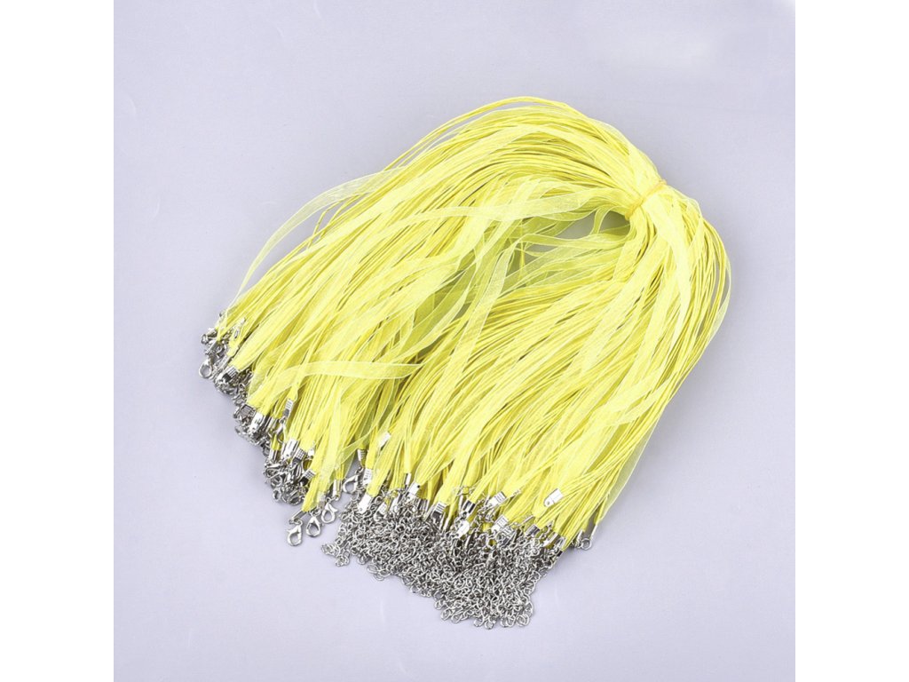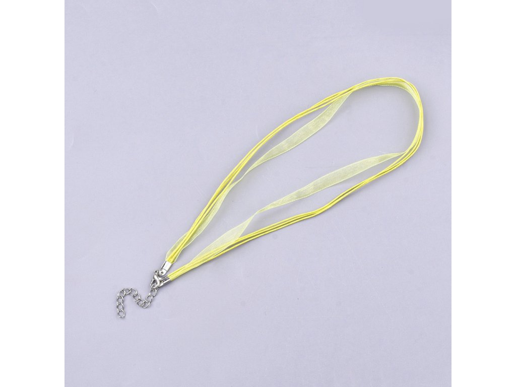 Náhrdelník polotovar voskovaná šňůra s organzou cca 45 cm žlutý