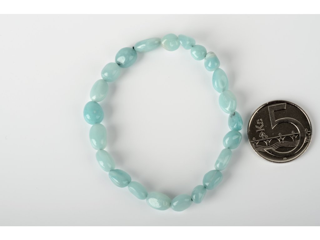 Náramek z amazonitu. Valounky 4-12 x 4-8 mm, obvod cca 17 - 18,5 cm
