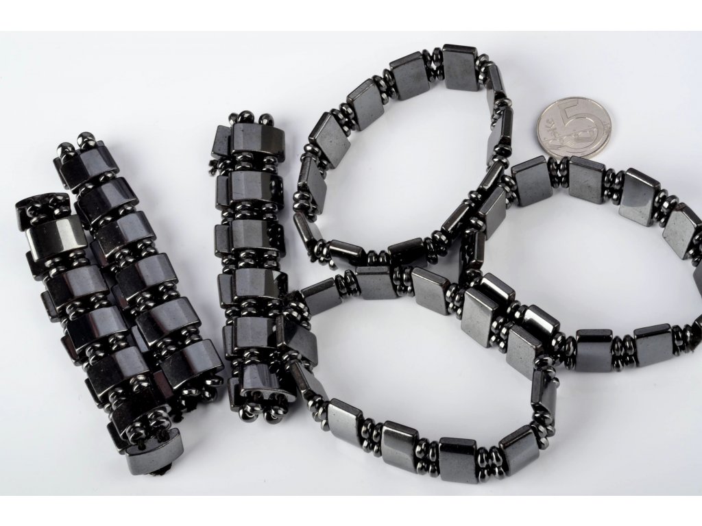Náramek z hematitu, magnetický. Obvod cca 22,5 cm