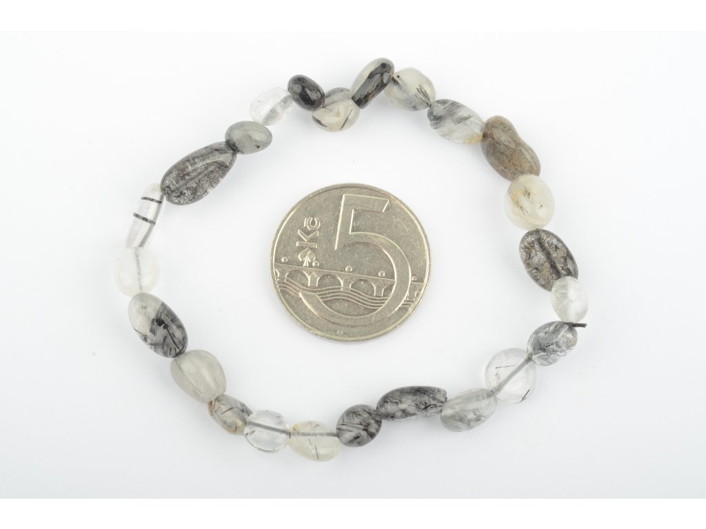 Náramek z minerálních valounků. Valounky o velikosti cca 6-8mm, obvod cca 17,5 - 18,5 cm
