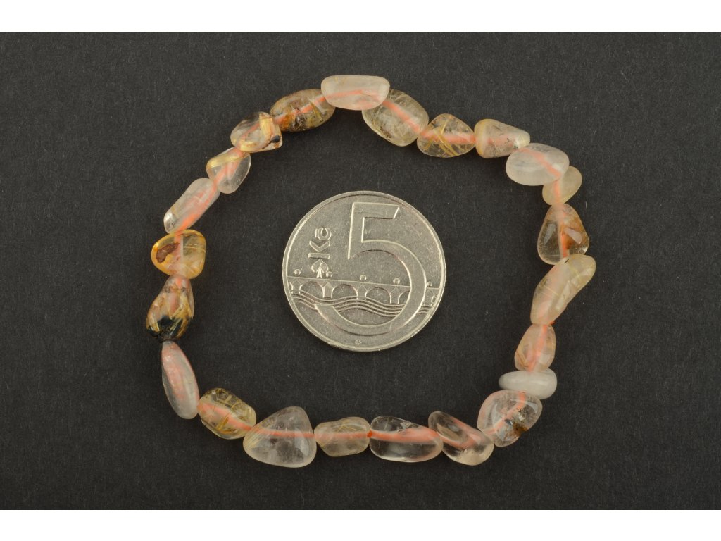 Náramek ze zlomků minerálů. Obvod cca 18 - 19 cm.