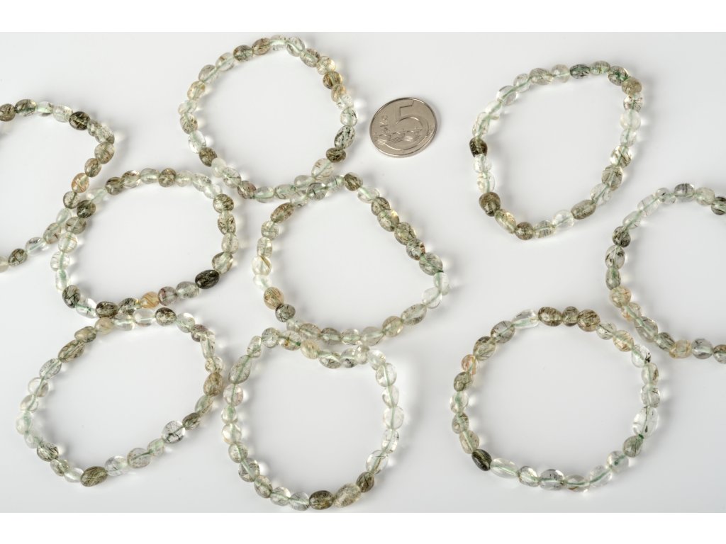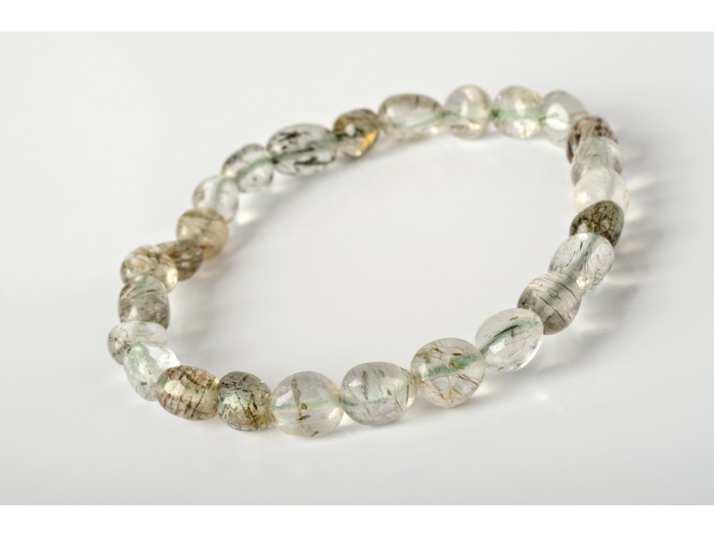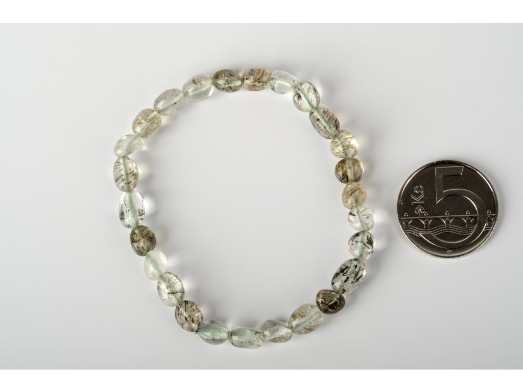 Náramek z křišťálu s rutilem. Valounky 4-12 x 4-8 mm, obvod cca 17 - 18,5 cm