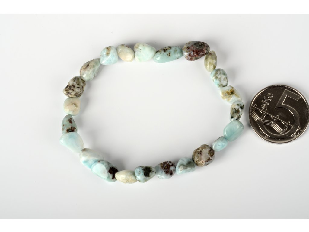 Náramek z larimaru. Valounky 4-12 x 4-8 mm, obvod cca 17 - 18,5 cm