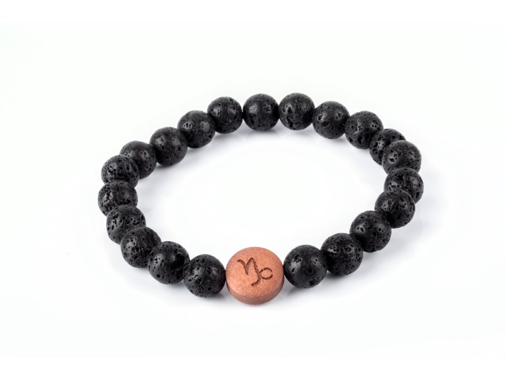 Náramek z minerálních kuliček přírodní lávy o průměru 8mm s dřevěným korálkem o velikosti 12x4mm, obvod cca 18 - 19 cm