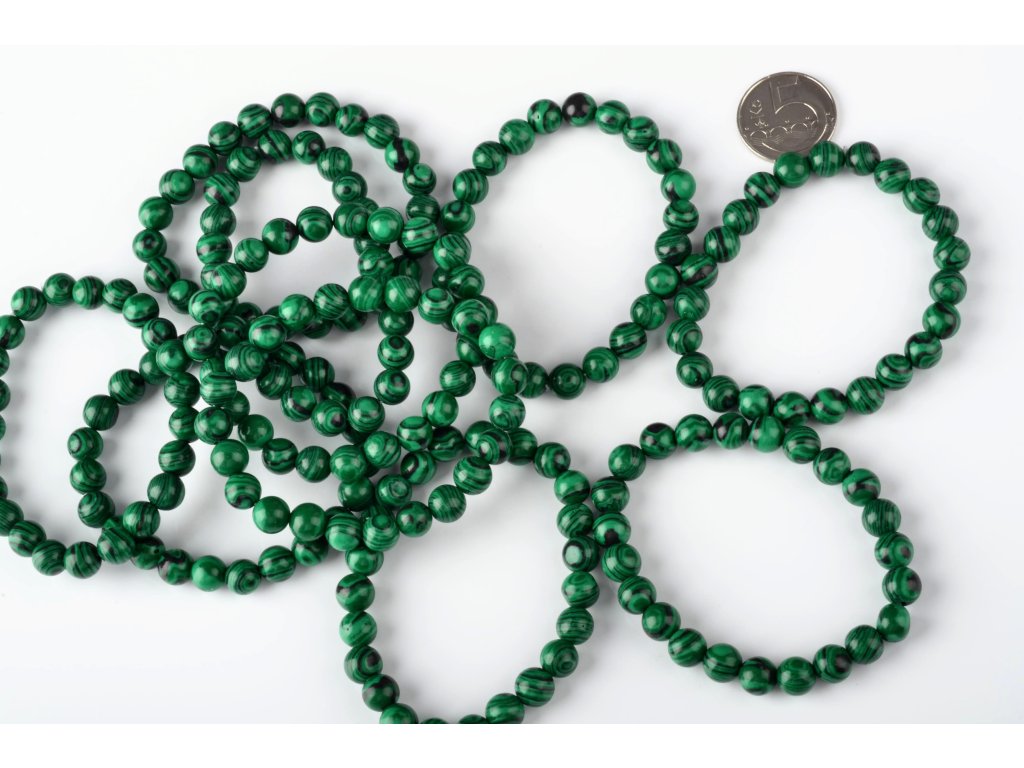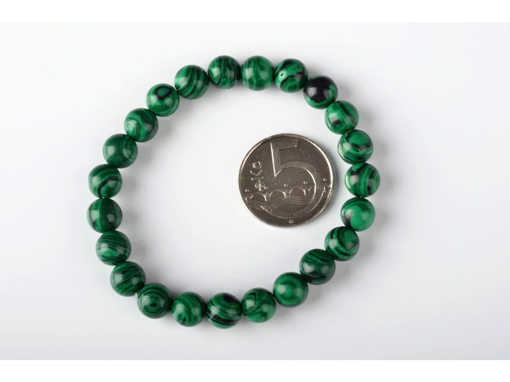 Náramek ze syntetického malachitu. Průměr kuliček 8mm, obvod cca 18,5 cm