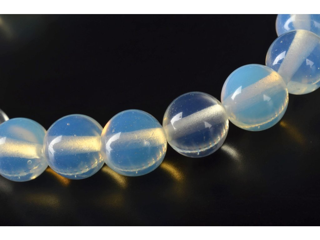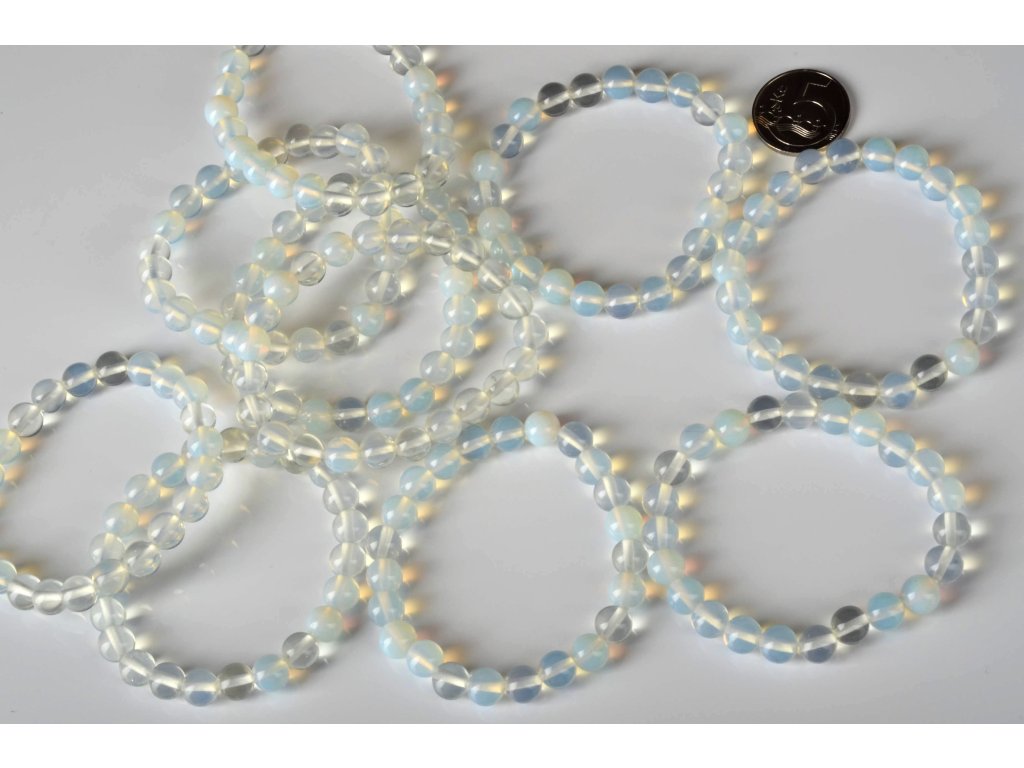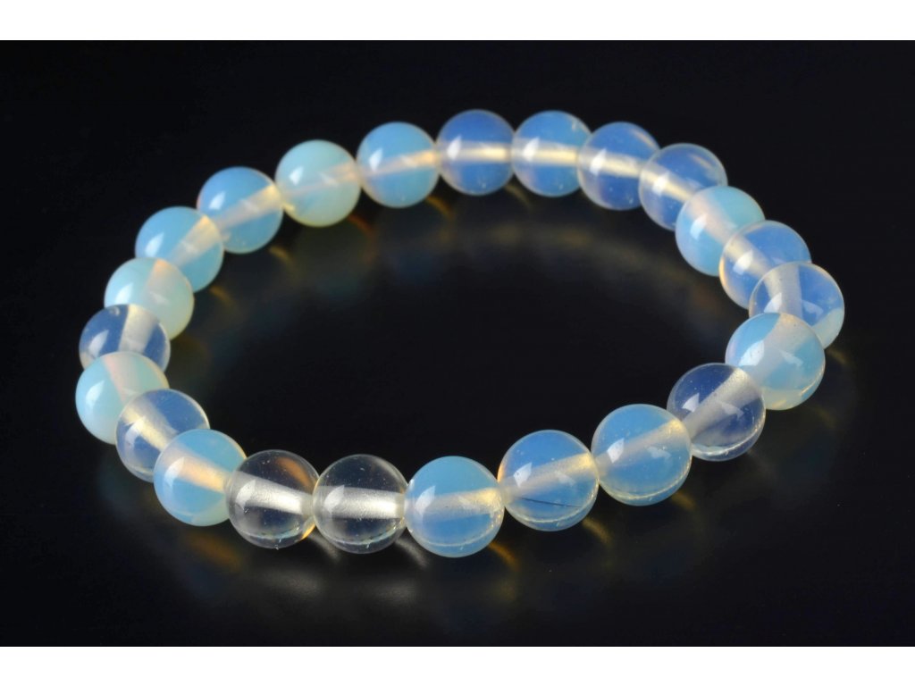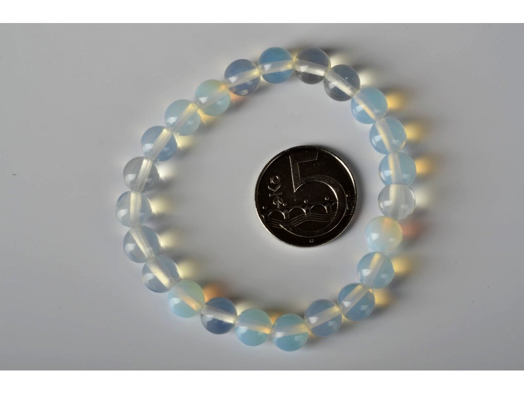 Náramek z opalitu (tzv. měsíční kámen). Průměr kuliček 8mm, obvod cca 18,5 cm