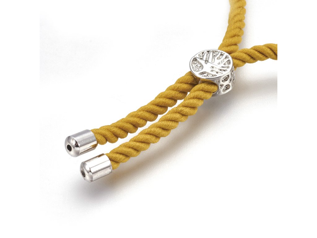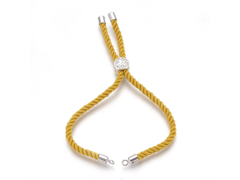 Náramek polotovar bavlněná šňůra s mosazným korálkem cca 22 cm oranžový