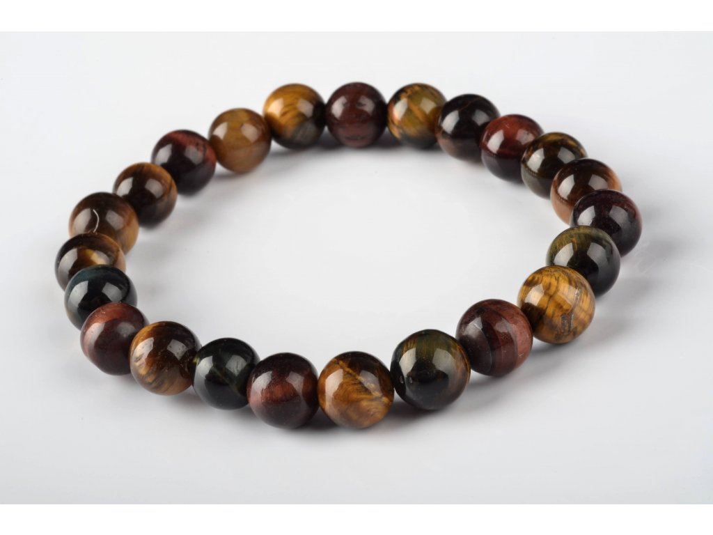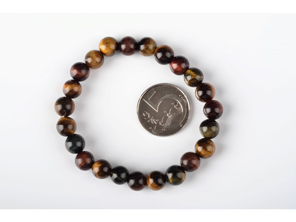 Náramek z tygřího, býčího a sokolího oka. Průměr kuliček 8mm, obvod cca 18,5 cm