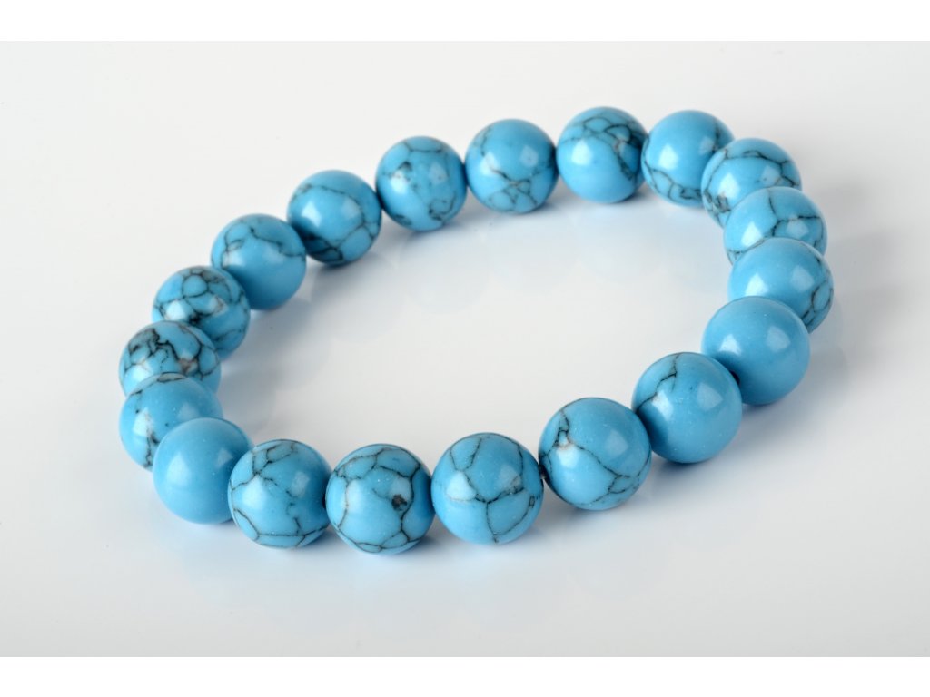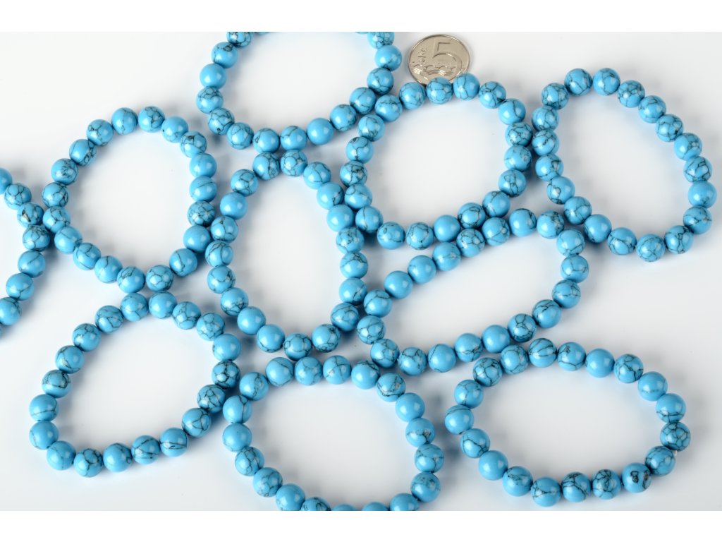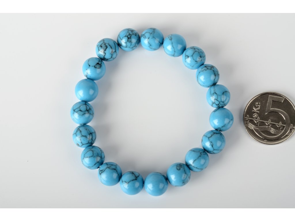 Náramek ze syntetického tyrkysu. Průměr kuliček 10mm, obvod cca 18 - 19 cm