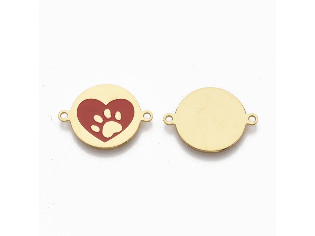 Nerezový konektor psí packa smalt 16x21x1mm zlatá barva