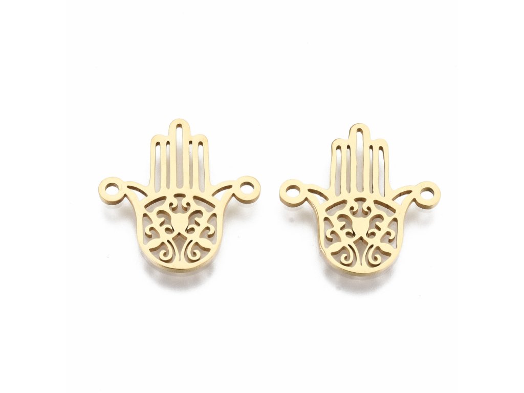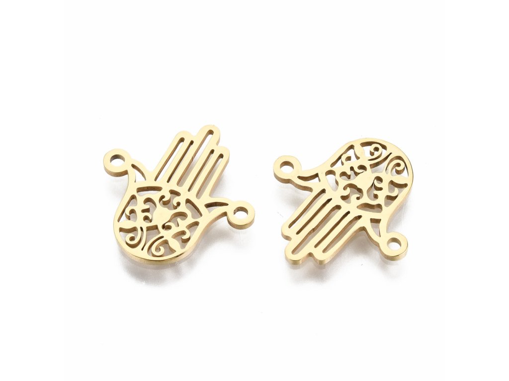 Nerezový konektor ruka Fátima 18.5x18x1mm zlatá barva