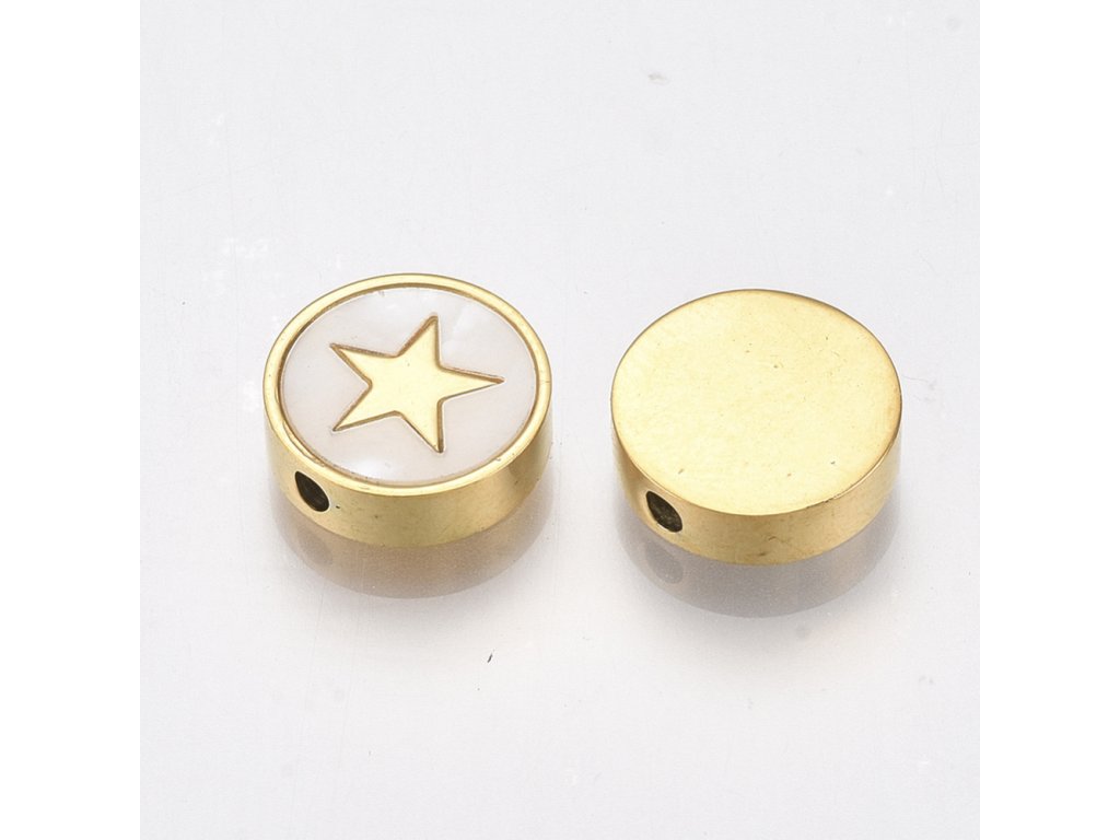 Nerezový korálek Davidova hvězda 8.5x10x3mm zlatá barva, průvlak 2mm. Cena uvedena za 1 kus