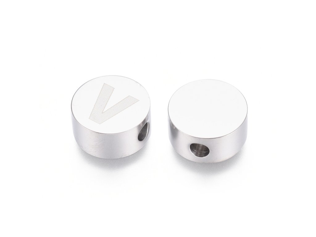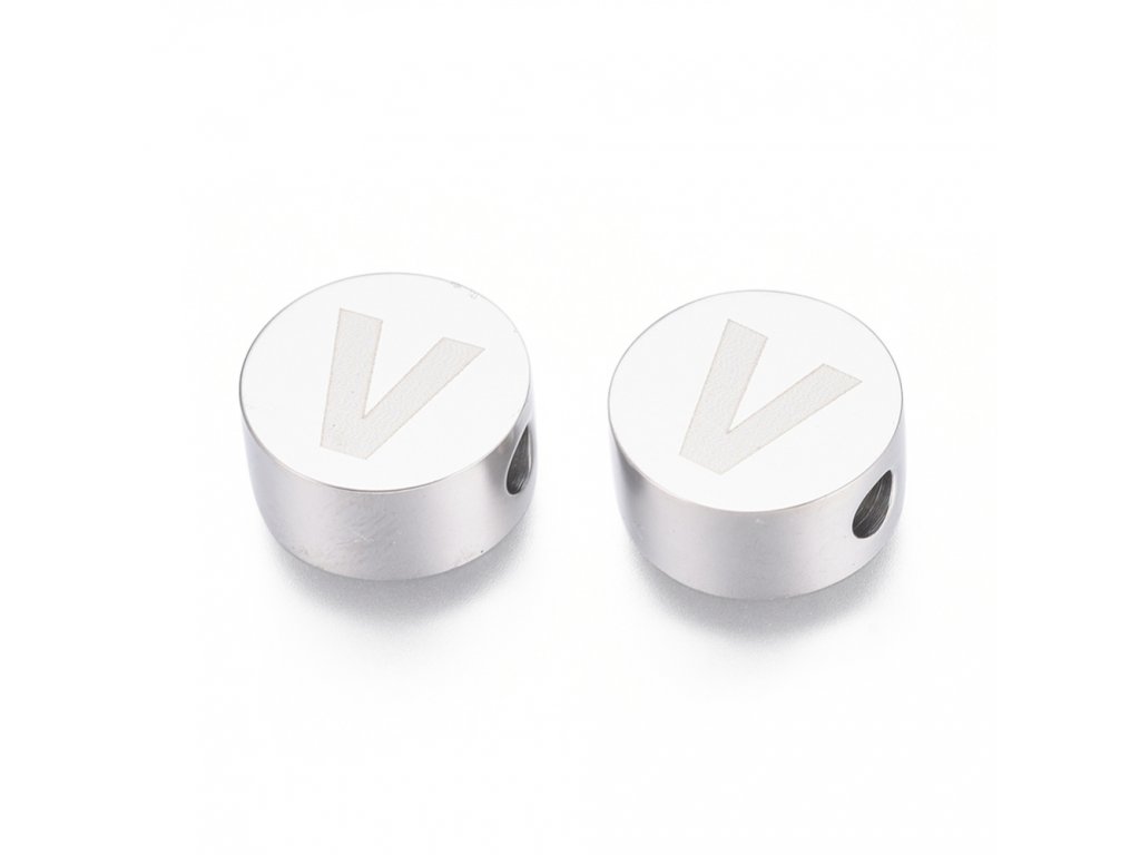 Nerezový korálek písmeno V