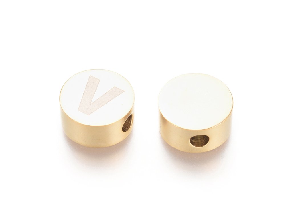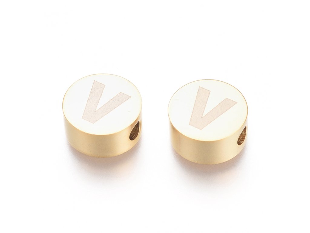Nerezový korálek písmeno V