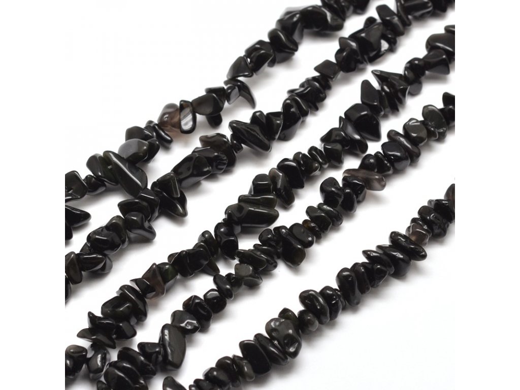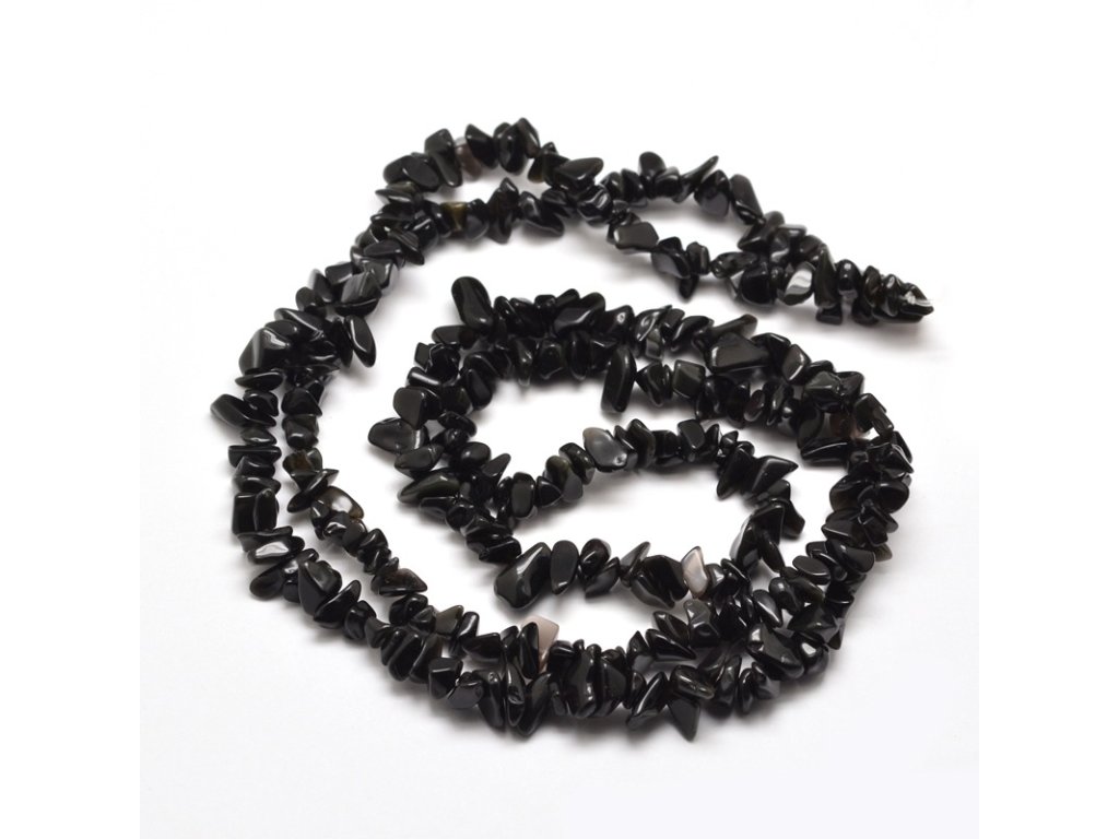 Obsidián zlomky 5~8x5~8mm šňůra cca 80cm