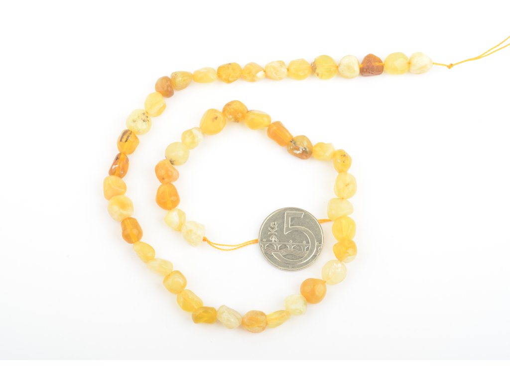 Neukončená šňůra s korálky ve tvaru valounků. Délka šňůry cca 37 cm +- 2cm. Rozměr valounků v rozmezí 4~8x6~9x5~7mm