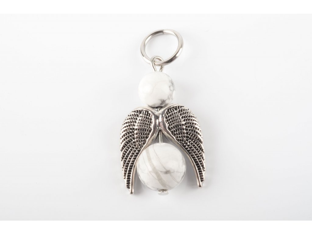 Kroužek s řetízkem cca 75mm, průměr kroužku cca 20mm, andílek cca 30mm, hlavička 6mm, tělo 8mm