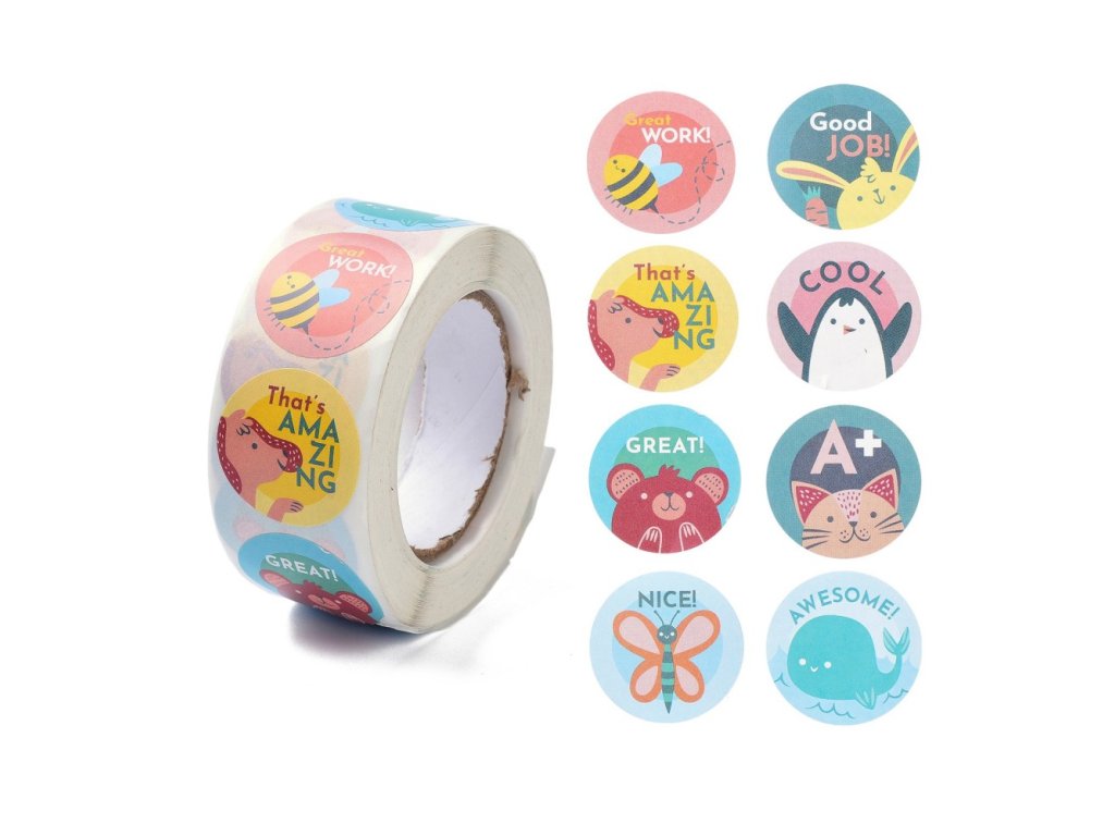 Samolepky kotouč 500 kusů samolepek - anglické výrazy zvířátka