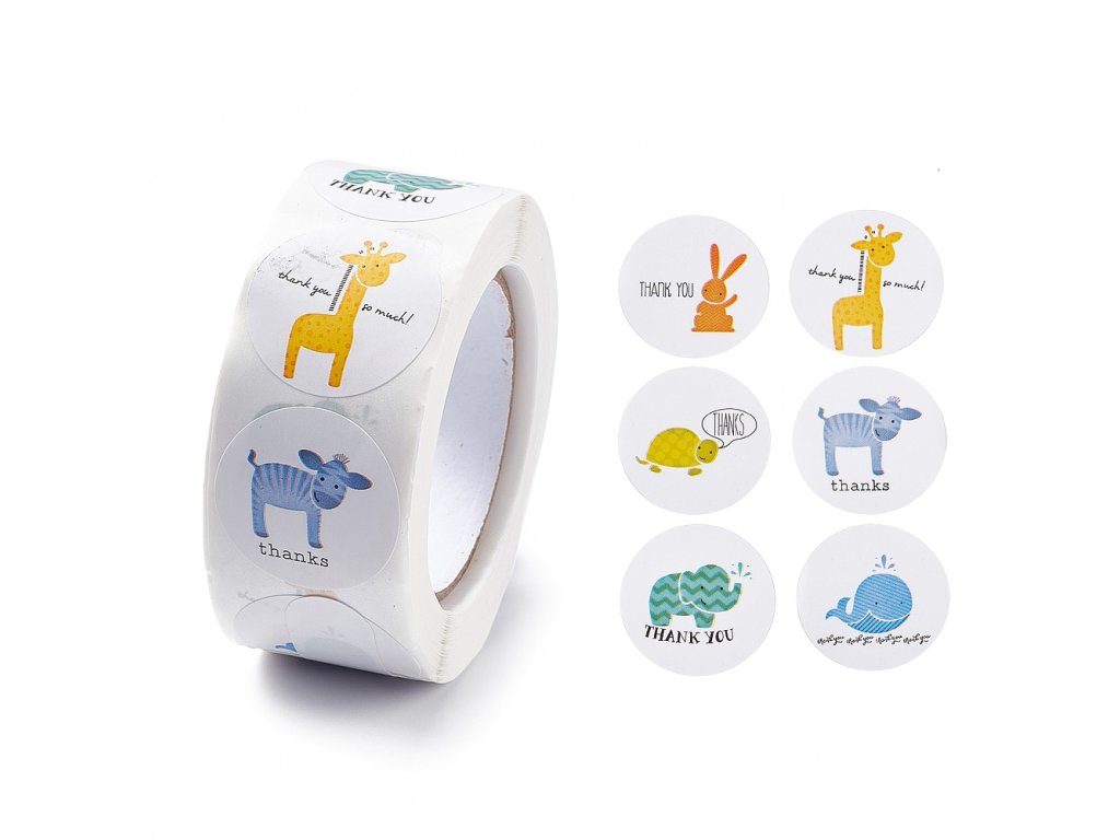 Samolepky kotouč 500 kusů samolepek zvířátka